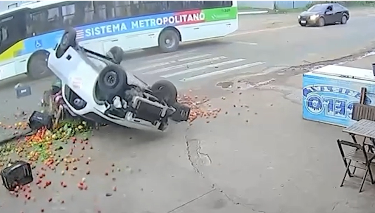 Na MA-201, estrada de Ribamar, na manhã do último sábado (24) uma colisão envolvendo um ônibus, uma picape e uma motocicleta deixou uma mulher ferida. O acidente foi registrado por uma câmera de segurança da região.