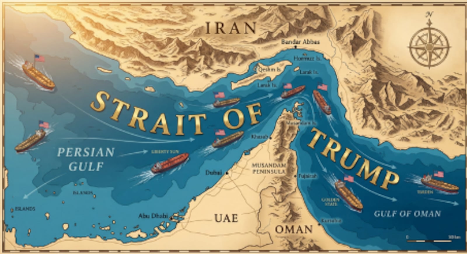 Trump publica montagem do estreito de Ormuz como ‘estreito de Trump’