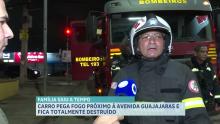 Carro pega fogo próximo à Avenida Guajajaras e fica totalmente destruído